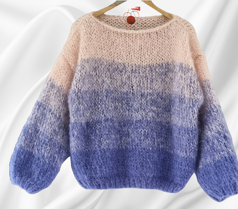 De DULA oversized trui is een luxe handgebreide trui, gemaakt van hoogwaardige mohair wol. De trui heeft een uniek patroon van twee kleuren die mooi in elkaar overlopen. Kies uw favoriete kleurcombinatie en maat en geniet van een stijlvolle oversized look. Laat uw stijl zien met deze prachtige mohair DULA oversized trui_x000D_